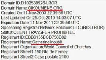 | WHOIS results for Oikoumene.org this is the Registrant of the website for the World Council of Churches |